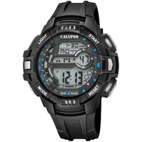 Herren-Armbanduhr digital der Marke CALYPSO - by FESTINA hochwertiges PU-Armband schwarz Kunststoff-Gehäuse mit Kunststoff-Scheibe, bis 100m wasserdicht Gehäusedurchmesser 40mm, Gehäusehöhe 14mm Stoppuhr, Alarm, 24h-Anzeige, Datum - ... Mehr »