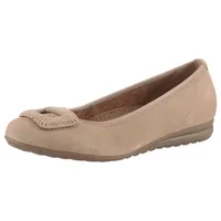 Größe , 38,5, Plateauhöhe , 0 cm, Farbe , taupe, Optik , unifarben, Obermaterial , Nubukleder, Innenmaterial , Textil, Stil , klassisch, Applikationen , Zierriegel, Besondere Merkmale , mit modischem Knoten, Weite G, Verschluss , Gummizug, Absatzart ... Mehr »