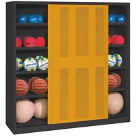 C+P Ballschrank mit Lochblech-Schiebetüren (Typ 4): Platzsparender Helfer im Geräteraum - Der C+P Ballschrank (HxBxT: 195x190x60 cm, mit Lochblech-Schiebetüren, Typ 4) hat nicht nur viel Platz für diverse Bälle in unterschiedlichen Größen, sondern ... Mehr »