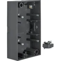 Aufputz-Gehäuse 2fach B.3 anthrazit, matt.Aufputz-Gehäuse für senkrechte und waagerechte Montage zum Einbau von Unterputz Einsätze und Abdeckrahmen. Mit Leitungs-/Kanaleinführung oben/unten, Boden geschlossen, zur Montage auf entflammbarem Untergrund geeignet. Material: Kunststoff, ...