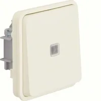 Taster-Einsatz mit Wippe beleuchtet, Wechsler W.1 polarweiß LT.Taster-Einsatz, Wechsler, beleuchtet AP/UP mit Linse mit Linse, mit blauem LED-Aggregat 230 V für Schalter/Taster. Für Beleuchtung und Kontrollschaltung, mit N-Klemme, mit Steckklemmen, Einsätze erreichen nur bei Montage mit einem Gehäuse AP oder Rahmen für UP-Montage der Produktlinie W.1 den Schutzgrad IP55. Aufputz-Installation. Material: Kunststoff, Thermoplast, ...