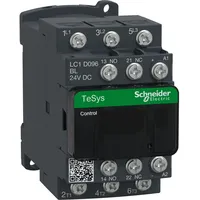 Leistungsschütz TeSys LC1D. 3 polig, 3 Schließer. Zusätzliche Hilfskontakte- 1 Schließer + 1 Öffner, Bemessungsbetriebsleistung bei AC-3, 400 V 4 kW, Bemessungsbetriebsstrom Ie bei AC-3, 400 V 9 A, Spule 24 V DC. Abmessung (BxHxT) 45x77x95 mm, Gewicht 0,48 kg. Kategorie AC-1, AC-3, AC-4. integrierte bidirektionale Amplitudenbegrenzerdiode. Schnelle und einfache Einrichtung. Sichere und langlebige Stromverbindung mit Everlink und Federklemmen. Geeignet für Sicherheitsanwendungen durch mechanisch gekoppelte Kontakte und Spiegelkontakte. Zertifizierungen nach BV, GL, UL, GOST, RINA, CCC, CSA, DNV, LROS (Lloyds register of shipping). Produktstandards ...