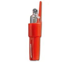 Von der Vorderseite des Schaltereinsatzes auswechselbar, farbige Kennzeichnung. Gehäusefarbe rot Nennspannung: 230 V Nennstrom: 0,5 mA Passend für UP-Einsätze 2000 / ... , 2001 / ... , 2020 / ... , 2021 / ... , 2061 / ... , 2025 als Ersatzbedarf für Schalter und Taster, Cardschalter und Lichtsignal und für Schalter und Taster der Serie impuls zur Erzeugung der Lichtaura Je nach gewünschter Helligkeit der LEDs lassen sich wahlweise 0,5, 1,0 oder 2,0 mA anlegen. Um Tasterschaltungen zu ermöglichen, ist die 0,5 mA-Variante vorgesehen. Dies erlaubt den Betrieb mehrerer LEDs in Tasterschaltungen parallel zum Relaiskontakt. Die Helligkeitsstufen werden durch die Sockelfarbe gekennzeichnet, die LED-Farbe wird durch einen separaten Farbpunkt auf dem Sockel ...