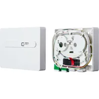 Kompakte, universelle Glasfaser-Anschlusseinheit zur Montage an Unterputz- oder Hohlwanddosen, für die Aufputz- oder Tragschienenmontage, Bestückt mit Kupplungen mit Lasershutter und Singlemode-Pigtails zum Anspleißen an FITH Kabeln mit Singlemodefasern, ... Mehr »