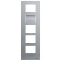 Frontplatte aus Edelstahl (Oberfläche gebürstet) für vier Module Diese Frontplatte benötigt neben den passenden Klingeltasten (siehe Zubehör) ein Busch-Welcome (2-Draht) Audio-/Video Modul (siehe Zubehör) oder ein Busch-Welcome IP Audio/Video Modul (siehe Zubehör). Platz für zusätzliche Funktionsmodule: 3. Entnahmewerkzeug liegt bei. Passende Abschlussleiste liegt bei. Zur detailierten Planung empfehlen wir den Busch-Welcome (2-Draht) Konfigurator (https://busch-jaeger-konfigurator.de) oder den Busch-Welcome IP Konfigurator (https://smart-ip-configurator.my.busch-jaeger.de). Spezifikationen Anzahl der Einheiten: 5 Werkstoff: Edelstahl Farbe: Edelstahl Montageart: variabel Dimensionen Breite: 135 mm Höhe: 421 mm Tiefe: 20,5 ...