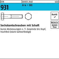 DIN 931 A 4 - 80 Sechskantschrauben mit Schaft - Abmessung: M 14 x 80 VE=S (50 Stück) Weitere technische Eigenschaften: · l: 80mm · Gruppencode 00931.948· Normart DIN ...