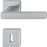 Die Türgarnitur ist ein funktionales und ästhetisches Element, das für die Ausstattung von Türen konzipiert wurde. Sie besteht aus hochwertigem Edelstahl, der für seine Langlebigkeit und Widerstandsfähigkeit bekannt ist. Mit einer Höhe und Breite der Schild- bzw. Rosette von jeweils 52 Millimetern bietet die Garnitur eine ansprechende und harmonische Optik. Die mattierte Oberfläche verleiht der Türgarnitur ein modernes und elegantes Erscheinungsbild, das sich in verschiedene Einrichtungsstile integrieren lässt. Die Garnitur ist für Türstärken von 37 bis 42 Millimetern geeignet und verfügt über eine Vierkantgrösse von 8,5 Millimetern, was eine einfache Montage und Anpassung an gängige Türmodelle ermöglicht. Im Lieferumfang ist eine Garnitur enthalten, die alle notwendigen Komponenten für die Installation umfasst. Diese Türgarnitur ist eine praktische Wahl für alle, die Wert auf Qualität und Design ...