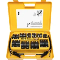 Eskimo Set Rohrgefriergerät (130002) Beschreibung: Einfaches und schnelles Einfrieren nicht entleerter Rohrleitungen mit einem Kohlendioxid-Kältemittel. Für die Reparatur und den Ausbau von Rohrleitungssystemen. Stahl-, Kupfer-, Kunststoff- und stabilisierte Rohre Ø 1⁄8 - 2" Ø 10 - 60 mm Kühlmittel: Kohlendioxid. Kühlleistung bis -79 °C. Ungiftig, nicht brennbar. REMS Eskimo - Einfrieren statt entleeren. Sehr schnell . Automatische Kühlmittelzufuhr Hohe Kühlleistung, z. B.: 3⁄4" Stahlrohr nur 5 Min. Ultraschmale, extrem langlebige Kühlstreifen. Kühlmittel Kohlendioxid-Kältemittel mit hoher Gefrierkapazität bis -79 °C. Nicht giftig. Nicht brennbar. Leicht zugänglich. Aufbau: Das starr am Rohr befestigte Kühlband und die direkte Kühlmittelzufuhr zum Rohr garantieren extrem kurze Gefrierzeiten und schonen den Kühlmittelverbrauch. Es ist eine Ein- und Zwei-Wege-Kühlung möglich, mit Hilfe zusätzlicher Abzweige ist der Anschluss weiterer Kühlstränge möglich. Kühlstreifen Einfache, sofortige Montage ohne Spezialwerkzeug. Ultraschmale, ultraflexible und ultrabelastbare Kühlbänder aus tieftemperaturbeständigem thermoplastischem Elastomer ermöglichen das Arbeiten auch in engen Räumen und Nischen. Befestigungsschrauben zusammen mit Leisten. Injektorgriff Ergonomisch geformter Kunststoffgriff, der bequem zu bedienen ist. Unzerbrechliche Messingdüse (Düse). Schneller und sicherer Anschluss an Kühlbänder. Ohne Anpassung wird immer die benötigte Kältemittelmenge zugeführt. Druckschläuche Flexible, nicht biegbare, bruchsichere Druckschläuche. Sehr lang, bietet ein breites Arbeitsspektrum. Einfach zu erweitern. Die drehbare Überwurfmutter verhindert ein Verheddern der Schläuche. Lieferset REMS Eskimo Set. Röhrengefrierschrank mit Kohlendioxid-Kältemittel. Für Stahl-, Kupfer-, Kunststoff- und stabilisierte Rohre Ø 1⁄8 - 2", Ø 10 - 60 mm. 10 Paar Kühlbänder in verschiedenen Größen für den gesamten Arbeitsbereich, Flaschenanschluss mit T-Stück, Flaschenverschluss, 2 Halter mit Düsen, 2 Druckschläuche im robusten ...