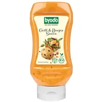 Damit erhält jede Grill- & Burger-Kreation ihr köstlich-würziges Finish! Fruchtiges Tomatenmark, feine Gewürzgurken- und Zwiebelstückchen sorgen für feinsten Genuss und die herrlich cremige, leicht stückige Konsistenz der Bio-Sauce. Die Byodo Grill & Burger Sauce eignet sich wunderbar alsGrundlage f ...