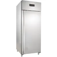 Der GastroHero Tiefkühlschrank GNH650BTM ist eine zuverlässige Lösung für die professionelle Tiefkühllagerung in Gastronomie, Großküche, Hotel und Lebensmittelbetrieben. Mit 616 Litern Kühlraumvolumen, robuster Edelstahlverarbeitung und Umluftkühlung ist er für den täglichen Gewerbeeinsatz konzipiert. Die energieeffiziente Technik sorgt für konstante Temperaturen und einen wirtschaftlichen Betrieb. Produktvorteile im Überblick: Innen und außen aus hochwertigem Chrom-Nickel-Stahl gefertigt Selbstschließende Tür bei einer Öffnung von weniger als 90° Besonders energiesparend durch hochwertige magnetische Türdichtungen Besonders leicht zu reinigende Türdichtungen (leicht zu entfernen, ohne Werkzeug) Inklusive Türschloss und Schlüssel Besonders langlebiger und hochwertiger Kompressor vom Marktführer verbaut Langlebige und energiesparende eingebaute LED-Beleuchtung Automatisches Abtauung-System verhindert Vereisung Hochwertiges digitales Thermostat zur präzisen Temperatureinstellung Informationen zum Innenraum: Optimal geeignet für GN 2/1 Behälter, Bleche & Roste Max. Tragkraft pro Rost ca. 30 kg Abgerundete Ecken im Innenraum ermöglichen eine leichte und schnelle Reinigung Kühlraumvolumen: 616 Liter Informationen zum Kühlbereich: Temperaturbereich: -18 °C bis -22 °C Kühlmittel: R290 Kältemittel in Gramm: 90 Umluftkühlung Inkludiertes Zubehör: 3 rilsanierte Roste GN 2/1 3 Paar Edelstahlschienen Produktdetails: Produktmaße (B x T x H): 740 x 830 x 1960 mm Leistung: 0,38 kW Kühlung: Umluft Anschlusswert: 230 V / 50 Hz Gewicht: 92 kg ...