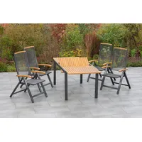 Produktdetails Markeninformationen , Merxx, Anzahl Teile , 5 tlg., Maßangaben Breite , 60 cm, Tiefe , 73 cm, Höhe , 116 cm, Sitzhöhe , 42 cm, Belastbarkeit maximal , 100 kg, Material Material , Aluminium, Material Gestell , Aluminium, Holzart , Akazi ...