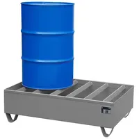 PW 200-2, lackiert, RAL 7005 Mausgrau Lagerung von 200-l-Fässern, auch mit 60-l-Fässern kombinierbarEigenschaften Konstruktion aus 3 mm Stahlblech Feuerverzinkte Profile als Standfläche 100 mm Unterfahrhöhe Stapelbar Mit Übereinstimmungserklärung (ÜH ...