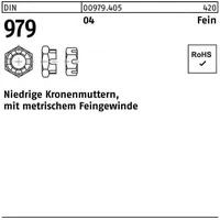 DIN 979 04 Fein Niedrige Kronenmuttern · mit metrischem Feingewinde - Abmessung: M 42 x3 VE=S (1 Stück) Weitere technische Eigenschaften: · Gruppencode: 00979.405 Typenbezeichnung Niedrige Kronenmuttern, mit metrischem Feingewinde Norm DIN 979 Werkstoff ...