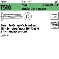 ~DIN 7516 Stahl Form DE-ISR galvanisch verzinkt Gewinde-Schneidschrauben mit Senkkopf nach ISO 7046-1 · ISR - Abmessung: DE M 5 x 20 -T25 VE=S (500 Stück) Weitere technische Eigenschaften: · Gruppencode: ...