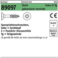 Artikel 89097 Stahl CE Seko-Z-Tg galvanisch verzinkt Spanplattenschrauben · Senkkopf · Pozidriv-Kreuzschlitz · Teilgewinde - Abmessung: 4,5 x 30/18 -Z VE=S (1000 Stück) Weitere technische Eigenschaften: · Gruppencode: 89097.019 · Norm: REYHER-Artikel ...
