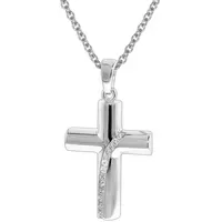 Set aus Kreuz und Kette in Sterling Silber 925, anlaufgeschützt rhodiniert, hochglanzpolierter Kreuz-Anhänger, 11 glitzernde synth. Zirkonias, Größe (ohne Schlaufe) 26 x 16 mm, stabile Rundanker-Kette, Stärke 1,5 mm, verstellbare Länge 42 cm und 45 cm, Federring-Verschluss