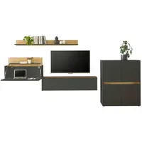 Furn.design Wohnwand grau Wotan Eiche Wohnzimmer Schrankwand Home Office Center