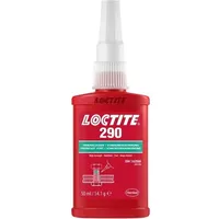 LOCTITE® 290 ist eine mittel-/hochfeste flüssige Schraubensicherung zum Sichern und Dichten von Gewindeverbindungen. Das Produkt dringt aufgrund seiner niedrigen Viskosität und hohen Kapillarwirkung in die Gewindezwischenräume ein, ohne dass die Verbindungen vorher gelöst werden müssen. Das Produkt härtet unter Luftabschluss zwischen enganliegenden Metallflächen aus und verhindert selbständiges Losdrehen und Undichtheiten durch Stöße und Vibrationen. Das Produkt kann auch Porositäten in Schweißnähten, Guss- und Sintermetallteilen ...