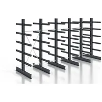 Die STIER Kragarmregale mit 5 gleich langen Kragarmen (pro Seite) und einer Kragarmbelastung von je 410 kg sind optimal für die Lagerung von Profilen, Rohren und Stäben geeignet. Dank der schraubbaren Ständerkonstruktion mit verstellbaren Kragarmen ...