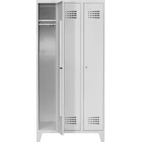 Stier Garderobenspind Premium mit Füßen 3 Abteile Zylinderschloss lichtgrau