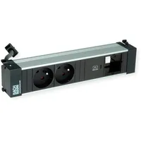 Die Bachmann POWER FRAME M Steckdosenleiste bietet eine praktische Lösung für die Stromversorgung in Innenräumen. Mit zwei UTE-Steckdosen, die in einem 35°-Winkel angeordnet sind, ermöglicht sie eine flexible Nutzung, während der erhöhte Berührungsschutz zusätzliche Sicherheit bietet. Ein integrierter USB-C-Anschluss mit einer Leistung von 30W ermöglicht das schnelle Laden von Geräten. Die Steckdosenleiste ist mit einem 0,2 Meter langen Kabel ausgestattet, das mit einem GST18-Stecker verbunden ist, und bietet somit eine einfache Installation. Das Gehäuse aus Aluminium sorgt für Langlebigkeit und Stabilität. Die kompakte Bauweise und das ansprechende Design machen die POWER FRAME M zu einer idealen Wahl für moderne Arbeitsplätze und Wohnräume. - Erhöhter Berührungsschutz für zusätzliche Sicherheit - Integrierter USB-C-Anschluss mit 30W Ladeleistung - Kompakte Bauweise für platzsparende Installation - Hochwertiges Aluminiumgehäuse für ...
