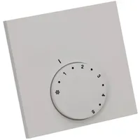 Allgemeine Beschreibung Der Alpha Regler direct Analog HK ist ein hochwertiger Raumtemperaturregler, der die gewünschte Raumtemperatur erfasst und regelt, um maximales Komfortempfinden zu gewährleisten. Er ermöglicht eine einfache Einzelraumregelung durch direkt angeschlossene Stellantriebe und kann in Verbindung mit der Anschlusseinheit Alpha Basis direct zu einem perfekt abgestimmten Gesamtsystem zur Flächentemperierung kombiniert werden. Die Soll-Temperatur wird über einen komfortablen Drehknopf mit gut ablesbarer Skalierung eingestellt. Technische daten Betriebsart: Heizen / Kühlen Betriebsspannung: 230 V ±10 % 50 Hz Leistungsaufnahme im Leerlauf: 2 A ohmsche Last, 200 VA induktiv Max. Anzahl anschließbarer Stellantriebe: 10 (max. 3 W/Stellantrieb) Wirksinn anschließbarer Stellantriebe: NC Einstellbereich Soll-Temperaturvorgabe: 10 bis 28 °C Messbereich Ist-Temperatur-Erfassung: 0 bis 40 °C Frostschutztemperatur: 6 °C Zulässige Umgebungstemperatur: 0 bis 50 °C Montageart: Wandmontage Aufputz Anschlussleitung: NYM-O 5 x 1,5 mm2 Anschlussklemmen: 7 Schraubklemmen 0,22 - 1,5 mm2 Schutzklasse: II Schutzgrad: IP20 Material: PC + ABS Oberflächenstruktur: erodiert Farbe: Signalweiß (RAL 9003) Gewicht: 90 g Abmessungen: 86 x 86 x 31 mm Kompatibilität und Zubehör Kompatibel mit der Anschlusseinheit Alpha Basis direct Direkt anschließbare Stellantriebe Installation Einfache und intuitive Installation Wandmontage Aufputz Anwendung Regelung der Raumtemperatur für Heizen und Kühlen Frost- und ...