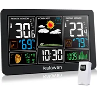 Kalawen Wetterstation mit Außensensor Innen und Außen 9-IN-1 Wireless Digital Wecker Barometer Weather Station Temperatur-Feuchtigkeits-Monitor Wettervorhersage für Zuhause Hausgarten Büro