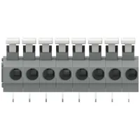 Leiterplattenklemme, Drücker, 1,5 mm2, Rastermaß 5/5,08 mm, 8-polig, Push-in CAGE CLAMP®, 1,50 mm2, grauKlemmenleisten mit Drückern Eindrähtige Leiter und feindrähtige Leiter mit Aderendhülsen direkt steckbar Komfortable Drückerbetätigung für das Anschließen von feindrähtigen Leitern und das Lösen von Leitern Einstellung zwischen den beiden Rastermaßen durch Zusammendrücken oder Auseinanderziehen der ...