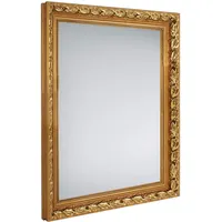 Klassische Eleganz- Der Spiegel TANJA überzeugt durch seinen kunstvoll verzierten Holzrahmen in edlem Gold - ein stilvoller Mix aus klassischem Design und dezenten, glamourösen Akzenten Verschiedene Einrichtungsstile - Der Spiegel harmoniert durch seine dezente Farbgebung ideal mit klassischen wie modernen Farb- und Einrichungswelten Blickfang - Der Holzrahmen zeichnet sich durch eine faszinierende Musterprägung aus, die ihn zu einem imposanten Blickfang macht Kompakte Maße - Dank einer Breite von 55 cm, einer Höhe von 70 cm und einer Tiefe von 3,5 cm lässt sich der Spiegel ideal über einer Kommode im Eingangsbereich platzieren Flexibel platzierbar - Der Spiegel kann nach individuellen Anforderungen und räumlichen Gegebenheiten horizontal und vertikal montiert ...