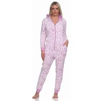 Normann Pyjama Damen Schlafanzug Einteiler Jumpsuit Overall aus Coralfleece rosa 40/42