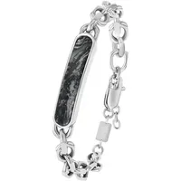 Material , Edelstahl, Materialoberfläche , Glanz, Materialfarbe , edelstahlfarben, Farbe Farbstein , Grau, Farbe , edelstahlfarben-Grau, Materialverarbeitung , massiv, Farbsteinart , Jaspis, Eigenschaften Armschmuck , verstellbare Gesamtlänge, Kettenart , Ankerkettengliederung, Verschlussart , Karab ...