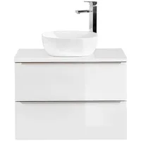 Lomadox Badmöbel Waschtisch-Unterschrank Set 81cm, Hochglanz Weiß mit Eiche, 41cm Keramik-Waschbecken, 2 Softclose-Schubkästen, b/h/t 81/74,5/46 cm