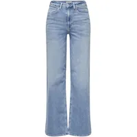 Figurbetonende Damen-High-waist-Jeans von ONLY mit Abriebeffekten im coolen Used-Look. Figurumspielendes Hosenbein sowie hohe Leibhöhe. Abwechslungsreiche Kombinationsmöglichkeiten von gemütlich bis stylisch. Die widerstandsfähige und stabile Jeansqualität macht die Hose beständig., Material: Materialzusammensetzung: Obermaterial: 92% Baumwolle, 6% Elastomultiester, 2% Elasthan, Materialart: Denim/Jeans, Materialeigenschaften: elastisch, Pflegehinweise: Maschinenwäsche, Optik/Stil: Optik: Abriebeffekte, Waschung: Denim, Farbe: Farbbezeichnung: Light Blue, Passform/Schnitt: Leibhöhe: hoch, Beinform: weit, Passform: weit, Details: Gürtelschlaufen: ja, Taschen: Coinpocket, Eingrifftaschen, Gesäßtaschen, Verschluss: 1-Knopf-Form, Reißverschluss, Besondere Merkmale: Abriebeffekte, casual, weit, Denim/Jeans, ...