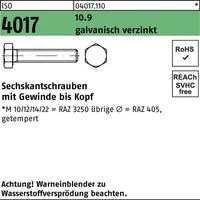ISO 4017 10.9 galvanisch verzinkt Sechskantschrauben mit Gewinde bis Kopf - Abmessung: M 16 x 220 VE=S (1 Stück)Weitere technische Eigenschaften:· l: 220mm· Gruppencode 04017.110· Normart ISO 4017 ...
