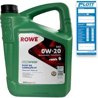 ROWE SUNSPEED SYNTH RS LONGLIFE IV 0W-20 (5 L) Mehrbereichs-Leichtlaufmotorenöl der Extraklasse auf 100% biosynthetischer Basis mit herausragendem Kraftstoffeinsparpotential. Bestens geeignet für aktuelle und zukünftige Pkw-Otto- und Dieselmotoren mit und ohne Turboaufladung. Eigens für moderne Fahrzeuge mit Abgasnachbehandlungssystemen entwickelt. Inhalt [Liter] 5 l , ...