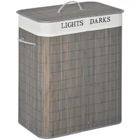 Homcom Bambus Wäschekorb schmal mit Deckel 100L Wäschesammler mit Griffen, 2 herausnehmbarer Wäschesack, Laundry Baskets Wäschebox für Waschküche, Schlafzimmer, Badezimmer Grau