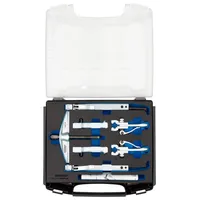 Zum Lösen festsitzender Verbindungen an Wellen oder in Gehäusen. Das universelle Set umfasst einen 2-Arm-Abzieher, Verlängerungen, Hakenlängen und Hakenspitzen für externe und interne Abziehanwendungen. Geeignet für wechselnde Abzieher-/Extraktionsanwendungen. Die möglichen Klemmweiten sind stufenlos bis 130 mm variabel, mit Klemmtiefen von 100, 200, 250 und 350 mm. Variabel, schnell und sicher arbeiten dank eines Schnellspannmechanismus, einer Hakenbremse und eines Hakens für enge Einbauräume. Wartungsfreie Spindel mit wechselbarem Spindelkopf. Lange Lebensdauer und hohe Sicherheitsreserven, da der Querkopf, die Haken und die Verlängerungen im Druckgussverfahren heissgeschmiedet sind. Schmale Hakenspitzen sind ideal für schwer zugängliche Stellen. Kombination von 8 verschiedenen Abziehern ist möglich. Enthält einen Prüfwerkzeuginsert zur schnellen Identifizierung fehlender Werkzeuge. Hergestellt in ...