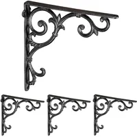 Relaxdays Regalwinkel, 4er Set, Gusseisen, antike Regalträger, Winkel Regalbretter, HxBxT: 24,5 x 4 x 24,5 cm, schwarz