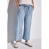 Weite Damen-Jeans der Marke STREET ONE. Mit figurumspielendem Hosenbein und hoher Leibhöhe. Versehen mit einem Kordelzug. Kombinierbar für lässige Freizeitslooks. Der unempfindliche und robuste Jeansstoff macht die Hose pflegeleicht., Material: Materialzusammensetzung: Obermaterial: 50% Baumwolle, 50% Lyocell, Materialart: Denim/Jeans, Materialeigenschaften: atmungsaktiv, elastisch, pflegeleicht, Pflegehinweise: 30°C Maschinenwäsche, Optik/Stil: Optik: unifarben, Farbe: Farbbezeichnung: Light Blue clean, Passform/Schnitt: Leibhöhe: hoch, Beinform: weit, Schnittform Länge: lang, Details: Gürtelschlaufen: nein, Applikationen: Kordelzug, Taschen: Eingrifftaschen, Verschluss: Kordel, Verschlussdetails: vorn, Besondere Merkmale: mit elastischem Bund und Tunnelzug, Maßangaben: Größenhinweis: Fällt klein aus, bitte eine Größe größer ...