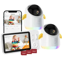 Avylet Babyphone mit 2 Kameras und APP 2K/5,0 Zoll WLAN Babyfon mit Split-Screen PTZ 360° 4× Zoom IR-Nachtsicht Automatische Verfolgung mit 2*Halterung & Grau