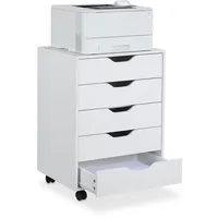 Relaxdays Rollcontainer, 5 Schubladen, HxBxT: 66,5 x 48 x 39,5 cm, Büroschrank, Aktenschrank mit Rollen, Büro, weiß