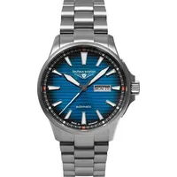 GEHÄUSE Gehäuse ausTitanFarbe des GehäusesSilberGlasSaphirglas UHRWERK Art der AnzeigeAnalogUhrwerkAutomatik ZIFFERNBLATT Farbe des ZiffernblattsBlau ARMBAND Farbe des ArmbandsSilberArmband ausEdelstahl TECHNISCHE DATEN Durchmesser (ohne Krone) in ...