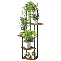 Relaxdays Pflanzenständer, 5 eckige Ebenen, HxBxT: 107 x 58 x 58 cm, Indoor Pflanzenregal, Industrial, schwarz/braun
