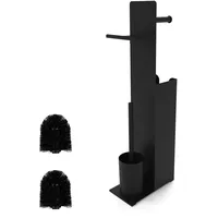 Relaxdays WC Garnitur, HxBxT: 67 x 22 x 12 cm, stehender Klopapierhalter, Klobürste, Ersatzrollenhalter, Ablage, schwarz