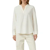 Klassische Langarmbluse für Frauen von s.Oliver. Mit einem normalen Schnitt. Kombinierbar für die Arbeit und den Feierabend. Der anschmiegsame und leichte Webstoff macht das Oberteil besonders bequem., Material: Materialzusammensetzung: Obermaterial: 68% Baumwolle, 32% Viskose, Materialart: Web, Materialeigenschaften: atmungsaktiv, pflegeleicht, Pflegehinweise: 30°C Maschinenwäsche, Optik/Stil: Optik: unifarben, Farbe: Farbbezeichnung: OFF WHITE, Passform/Schnitt: Ausschnitt: Rundhals, Ärmellänge: Langarm, Ärmelabschluss: Aufschlag, Rumpfabschluss: gerader Abschluss, Passform: regular fit, Schnittdetails: Raffung am Rücken, Schnittform Länge: normal, Details: Applikationen: Markenlabel, Besondere Merkmale: mit ...