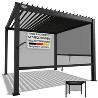 Verwandeln Sie Ihren Außenbereich in eine stilvolle Oase mit dem Lamellendach Tahiti 3 x 3 m inkl. zwei 3 m Seitenwände in elegantem Anthrazit. Die hochwertige Metall Pergola aus verzinktem Stahl bietet Ihnen eine flexible Terrassenüberdachung, die sich pe