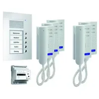 Vorkonfiguriertes Paket für 5 Wohneinheiten für den TCS:BUS bestehend aus: 1x Außenstation PUK 5Tasten 1Spalte UP EN, Artikelnummer: PUK05/1-EN, vorprogrammiert, 5x Türtelefon 4Tasten WS, Artikelnummer: ISH3030-0140, 1x Vers. + Steuerg. BVS20 1Strang ...