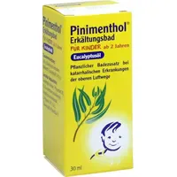 Wichtige Hinweise (Pflichtangaben): Pinimenthol Erkältungsbad für Kinder ab 2 Jahren. Wirkstoff: Eucalyptusöl. Anwendungsgebiete: zur unterstützenden Behandlung von akuten und chronischen Katarrhen der Luftwege. Zu Risiken und Nebenwirkungen lesen Sie die Packungsbeilage und fragen Sie Ihre Ärztin, ...